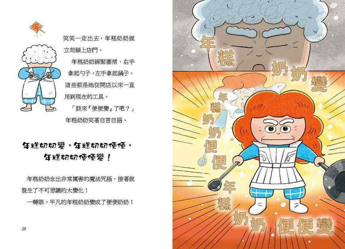 變身魔法咒語:「年糕奶奶變!年糕奶奶便便!年糕奶奶便便變!」