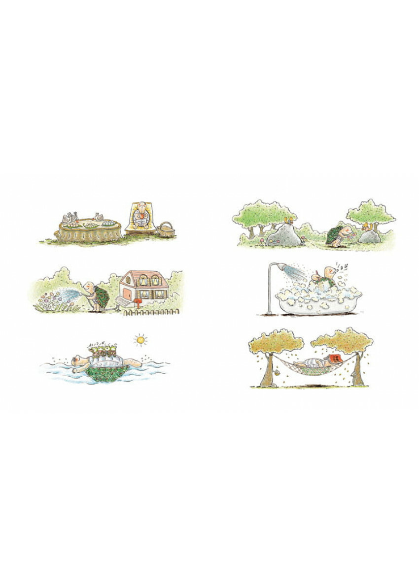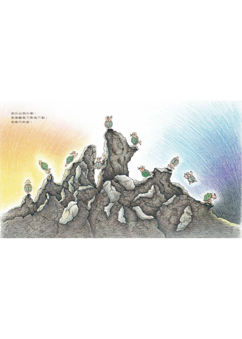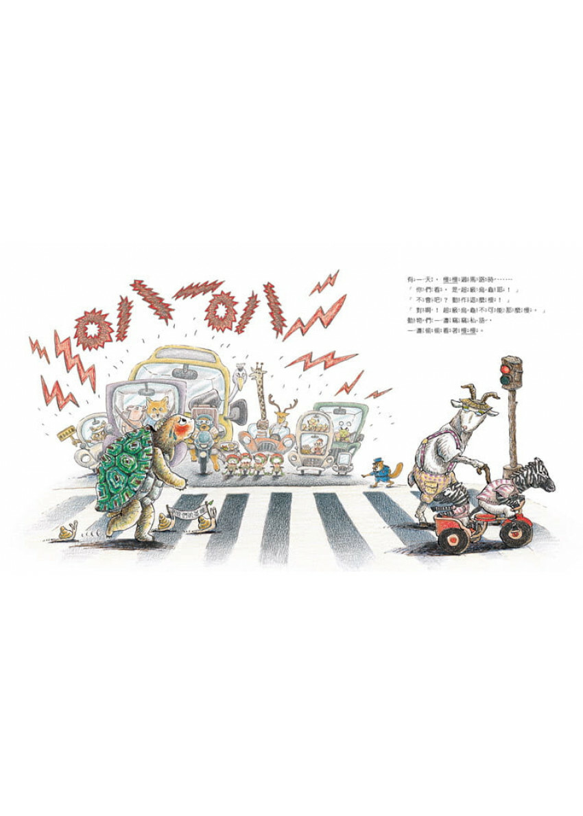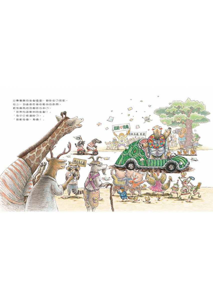 本書以色鉛筆作畫,畫者以多起充滿力道的線條呈現烏龜的決心與速度,讓讀者緊跟著烏龜經歷一場自我超越之旅。《超級烏龜》聚焦在烏龜僥倖獲勝之後,如何和這個與自己本性背離的榮耀共處?成了探討「我是誰?」的極佳範本。