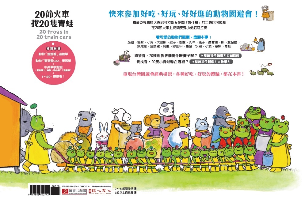 4.數學力:20節火車廂找20隻小青蛙,訓練孩子1~20數數的能力,每一節車廂躲一隻小青蛙,小青蛙的數量也隨之減少成19、18、17……5、4、3、2、1,在閱讀有趣故事的同時,也能訓練孩子數學加減法的能力。