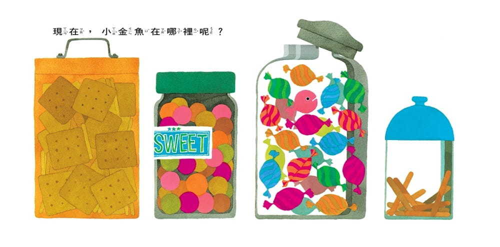 ★書腰附贈「小金魚貼紙」,你可以貼在家裡的各個角落,和孩子一起玩躲貓貓的遊戲,找找看小金魚藏在哪裡了?