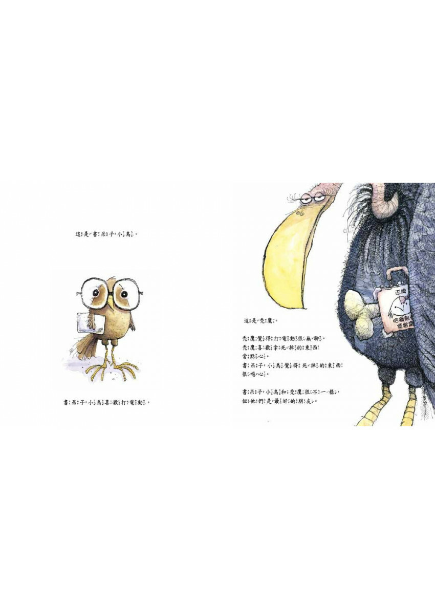 書呆子小鳥說那只是好玩,但禿鷹卻生氣地飛走了。