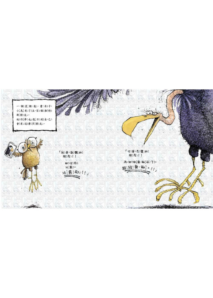 他每天沉迷網路交友跟發文,因此冷落了好朋友禿鷹。