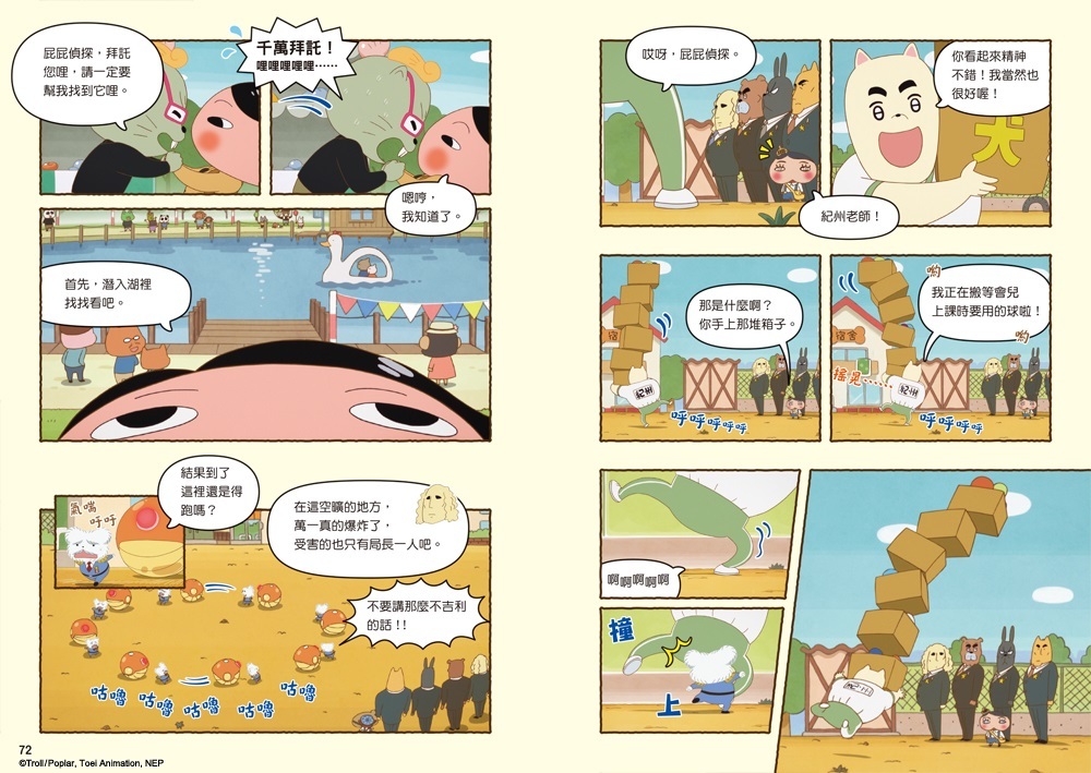 (*小編碎碎念:動畫漫畫第1集的兩則故事中,不負大家期望的,屁屁偵探的「大絕招」雖遲但一定到,只是他施展的對象與時機……嗯哼,有不一樣的趣味喔。)