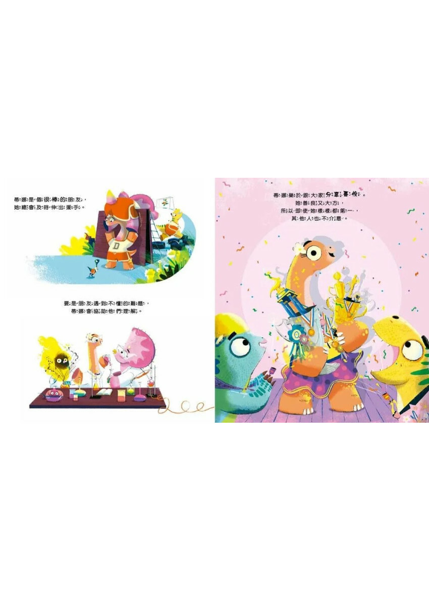 許多優秀的孩子常常有被排擠的困擾,或許鼓勵他們向小恐龍學習,試著多一些善意與分享,會帶來意想不到的改變與收穫。
