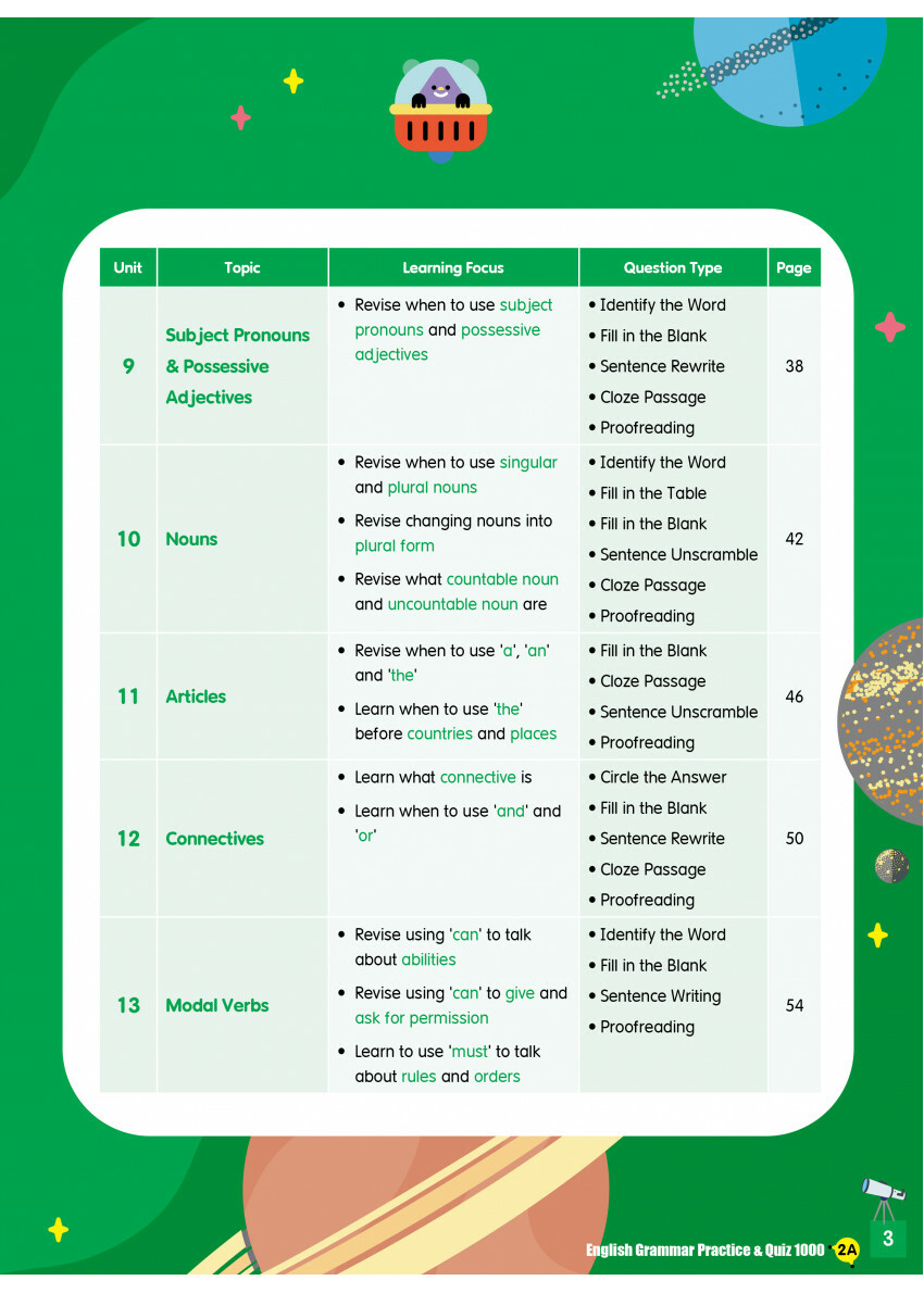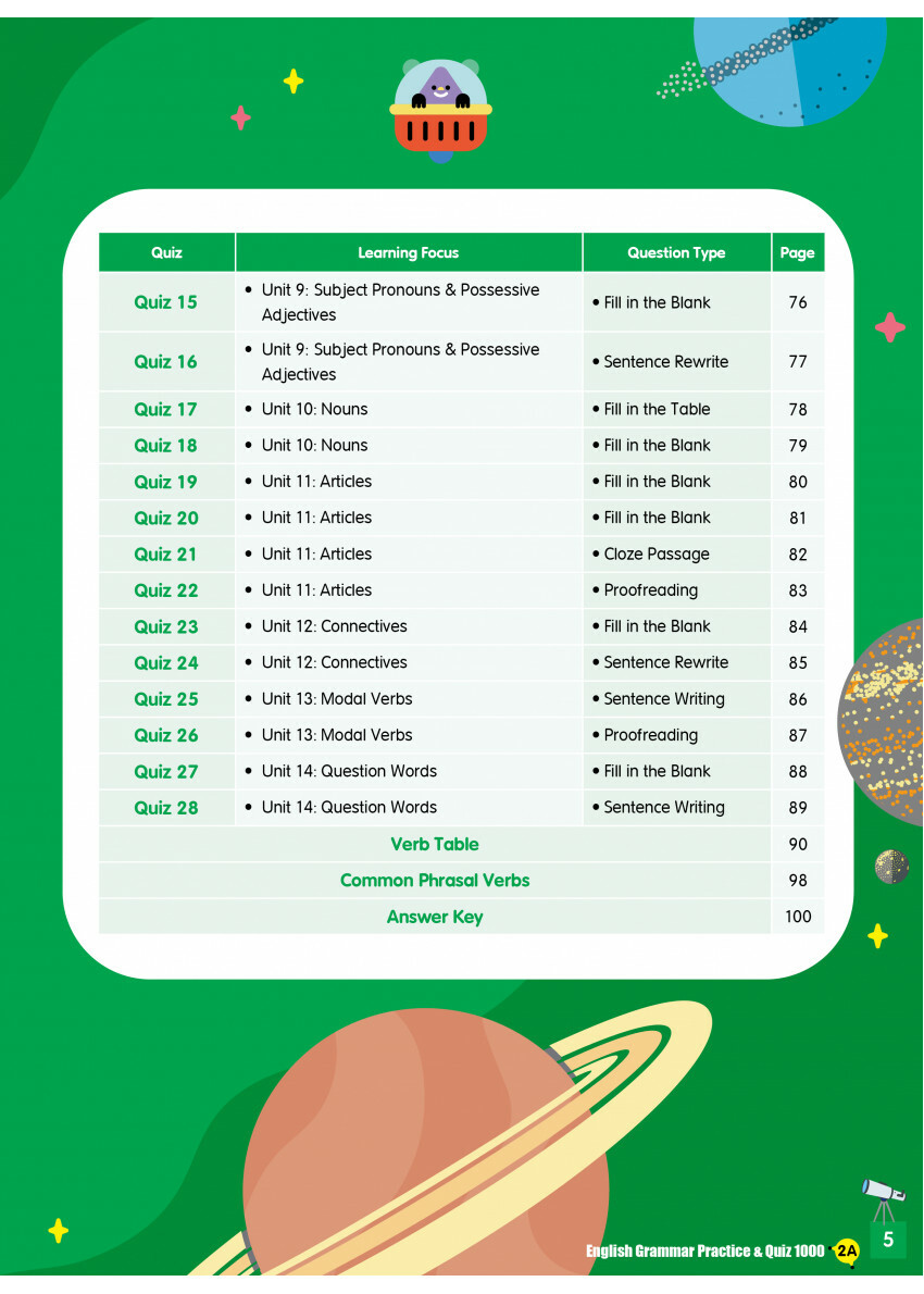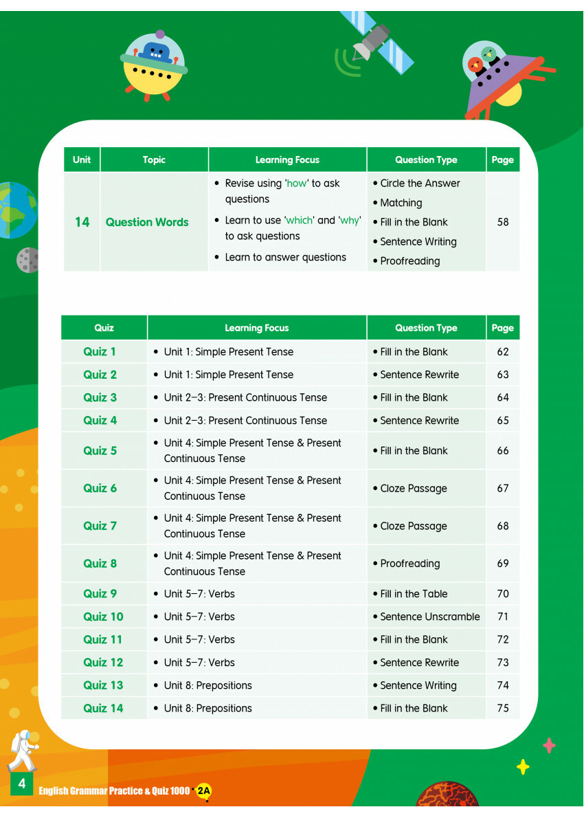 全書共有14個單元及28個文法測驗,涵蓋小學英語文法重點考核範圍