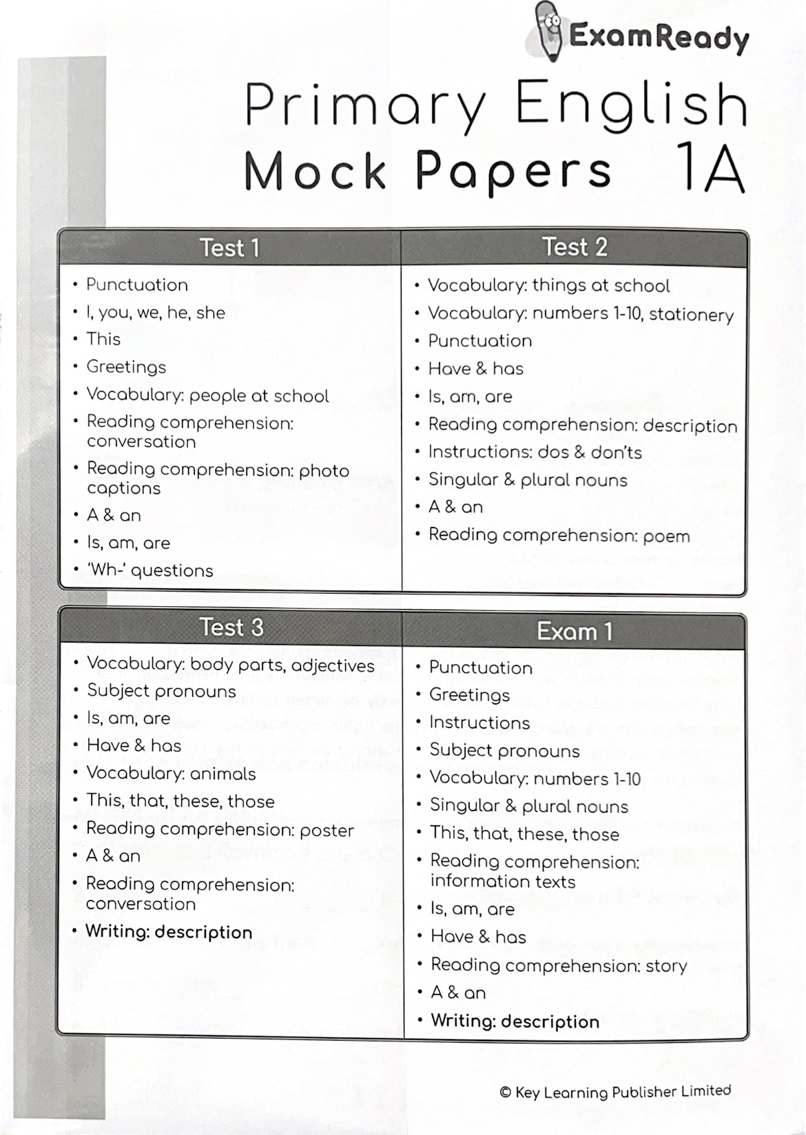 • 每級附送「重點溫習冊 (Revision Checklist)」一本,幫助學生快速重溫各文法重點