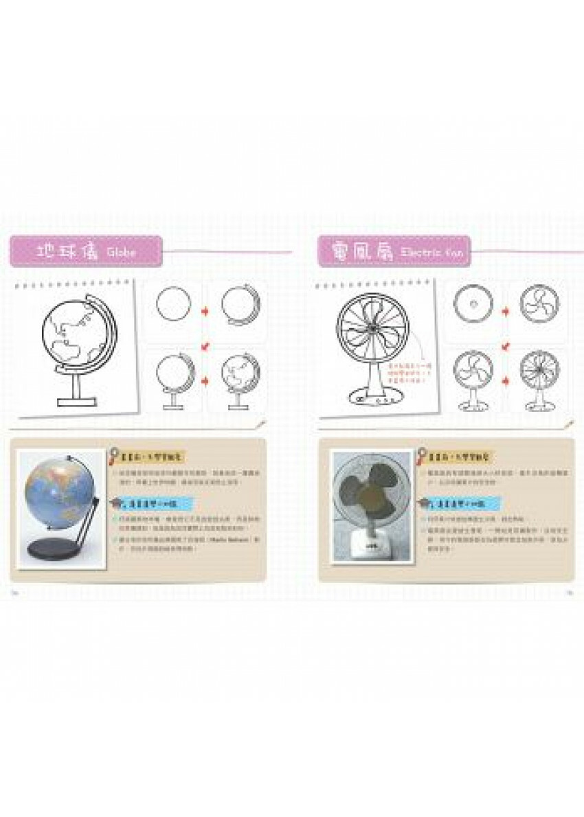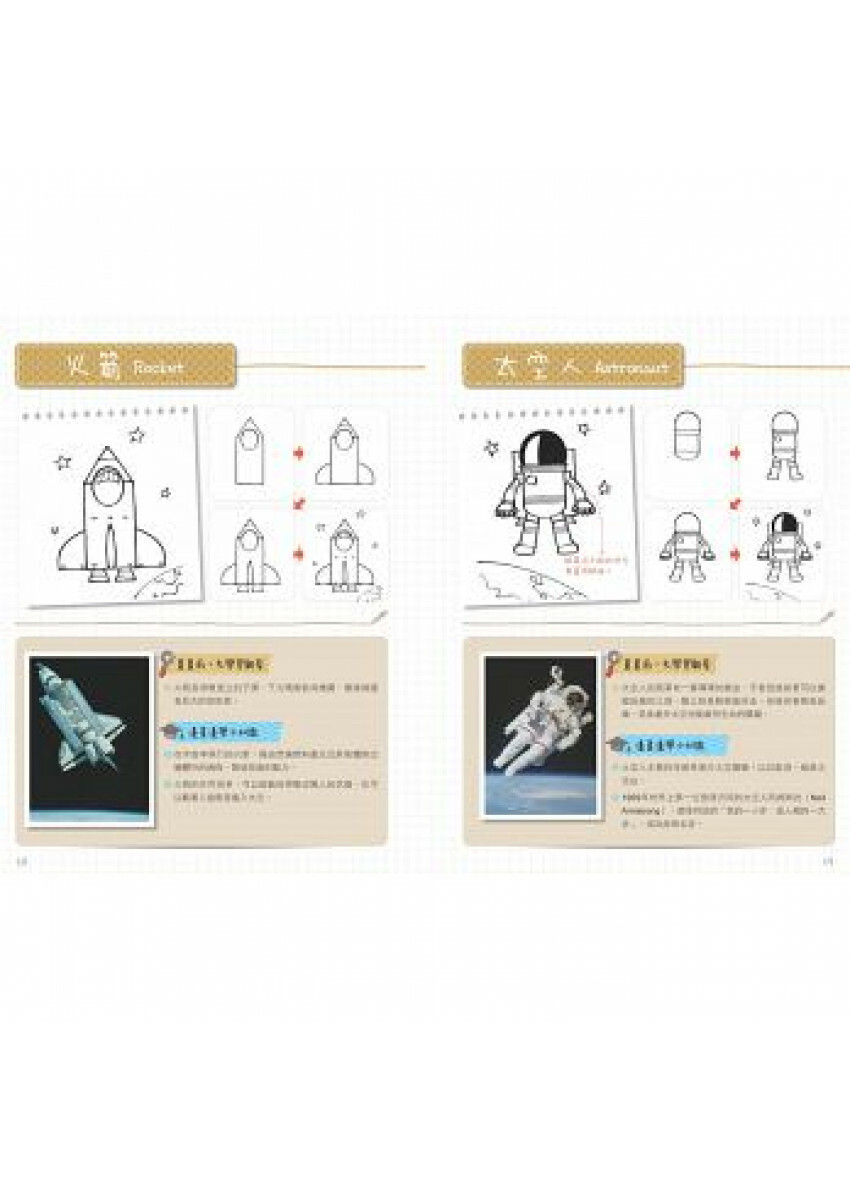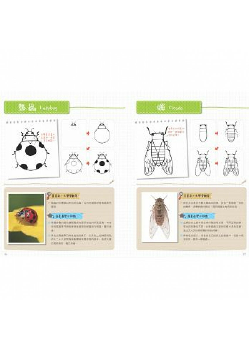 動物、昆蟲、恐龍、鳥類、交通工具、球類、太空人、樂器,一本收錄小朋友最想學的主題,不知道畫什麼好時,隨手翻閱,靈感立即湧現!