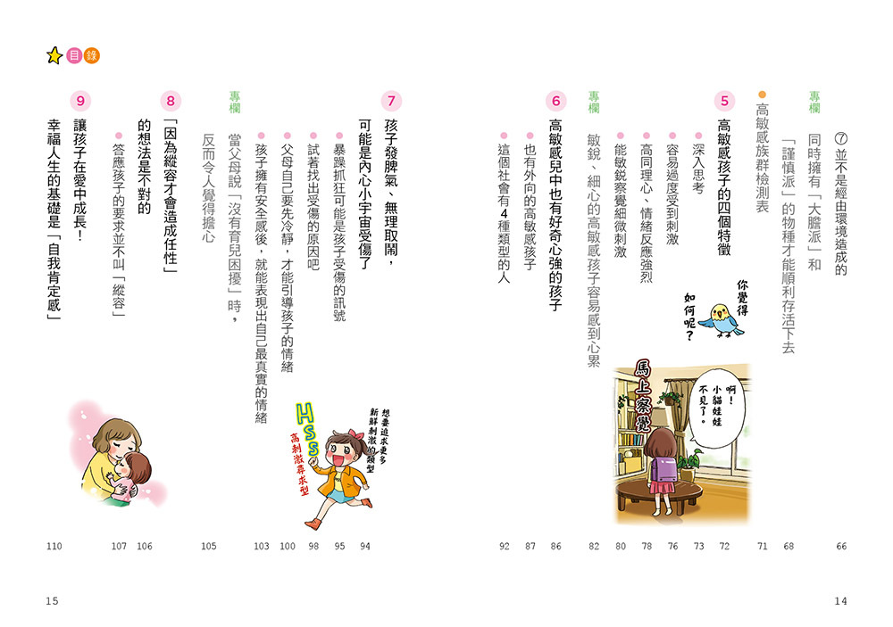 高敏感孩子擁有非常豐沛的感受性,由於面對他人情緒會特別的敏銳,因此,只要一點刺激,他們就會受到很大的影響,日復一日,父母在教養路上經常感到受挫及困惑,因此作者在本書提出許多實用對策,讓父母在育兒崩潰之際,能獲得撫慰與解方。