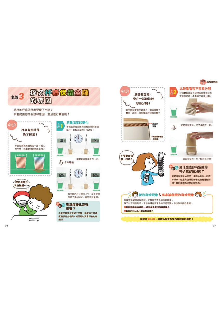 試試看5:紙杯的杯底都留有空隙,是為了保溫或好拿取呢?不要擔心推測錯誤,只要動手實驗,多嘗試幾次就知道嘍!