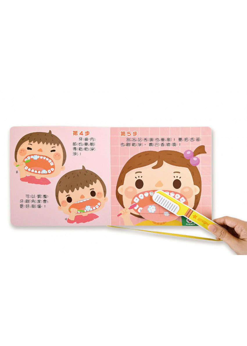 仿真泡棉牙刷+互動翻翻頁,輕鬆建立刷牙好習慣!