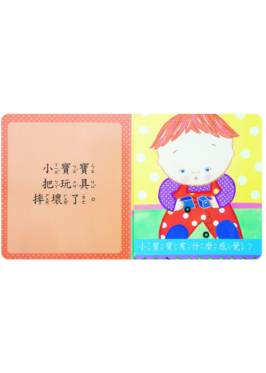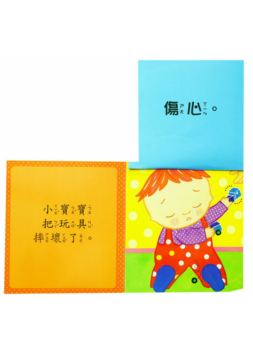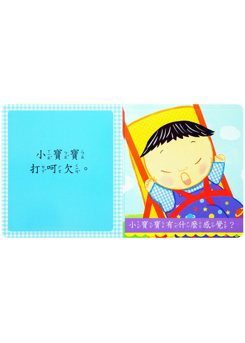 設計精美,互動性強,幼兒可以動手翻開堅固的黏貼頁,發現小寶寶有各種不同的心情:開心、肚子餓、想睡覺等等!