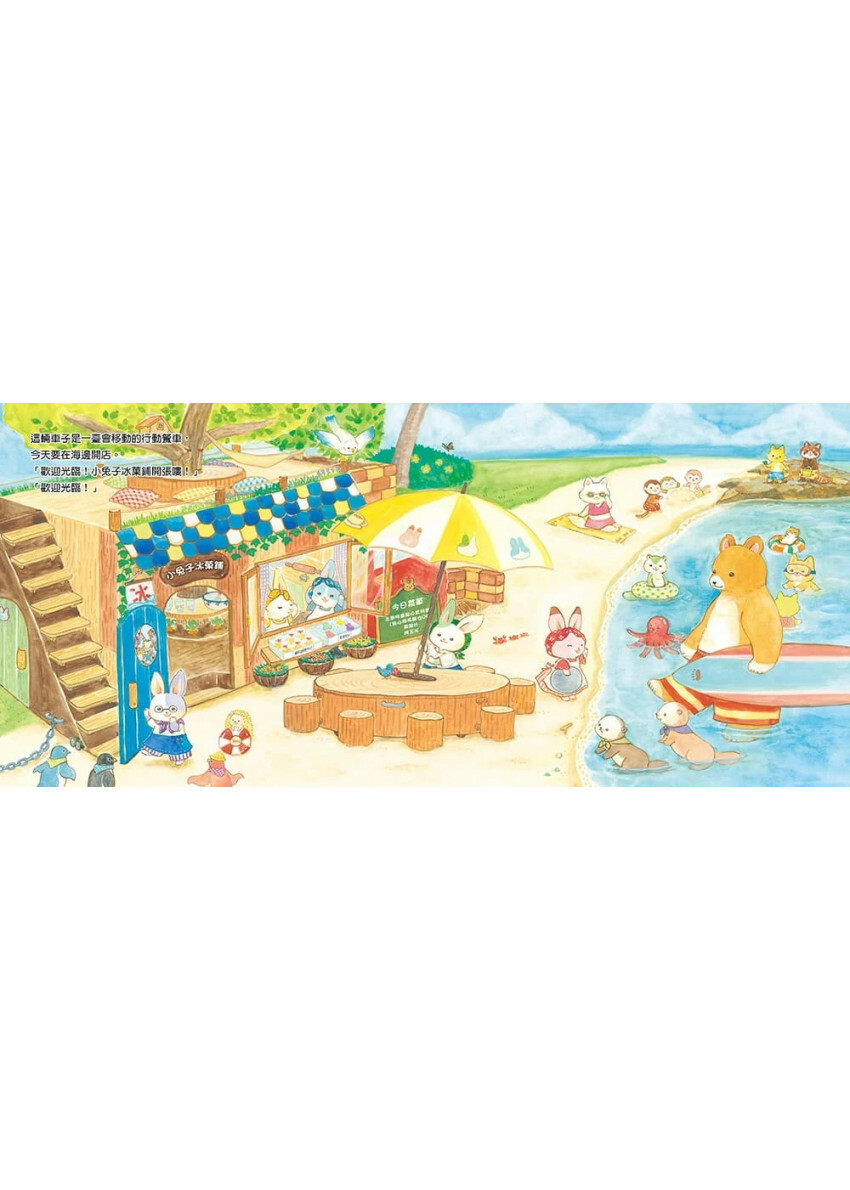 《歡迎光臨小兔子冰菓鋪》是深受親子讀者喜愛的《歡迎光臨小兔子咖啡館》作者松尾里佳子最新創作!5隻可愛又擅長料理的小兔子:小梅、噗噗、露娜、白白和咪魯再度登場。這回他們開著既是住家也是冰菓鋪的行動餐車來到夏天的海邊,做出各種美味的料理,像是吃飽飽熱狗套餐、特製水果刨冰、冰冰涼涼的鳳梨果汁,以及看起來超可口的烤玉米……讓每個客人都吃得笑咪咪。到了休息時間,5隻小兔子就到海灘去玩耍,他們在沙灘上發現了貝殼、珊瑚,還有磨成圓形的玻璃等等來自大海的禮物,還認識了新朋友──米娜,米娜帶著小兔子們游進海底洞穴裡,參觀她的飾品工作室……