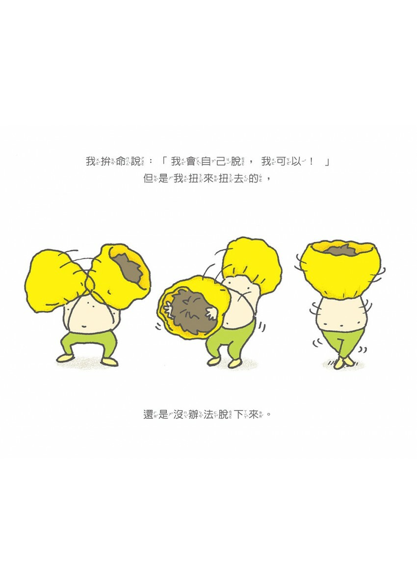 《脫不下來啊》就是這樣的作品,看似孩子因為脫不下衣服引發一連串爆笑事情,實則充滿了天馬行空的想像力。對孩子來說,這件事情不僅貼近自己的生活經驗,說不定還說出了他們曾有過的想法;對被侷限在自己價值觀裡的大人來說,則像是透過想像力把自己從原來的世界拉出來,徹底顛覆了一般的世俗觀念。或許這就是這本書大暢銷的原因吧!