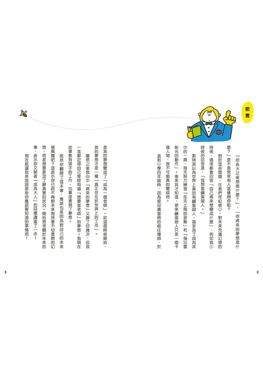 到了小學高年級至國中階段,人便會開始認真思考種種與「將來」有關的問題:找不到目標與夢想、不知道如何為夢想努力、不明白「認真念書」對人生的意義、不知道現在苦心經營的人際關係往後會產生什麼變化……