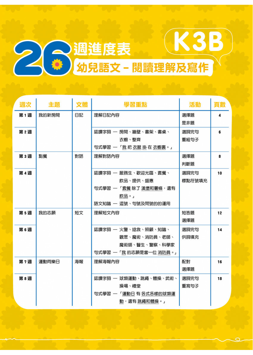 《26週學前教育系列幼兒語文-閱讀理解及寫作》(K3B)