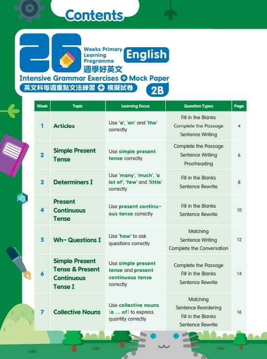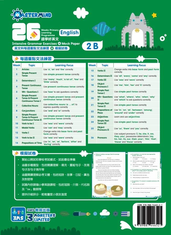 練習數量:每冊26個英文文法練習,3份模擬試卷
