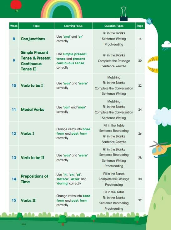 ·       題型多元,包括填充、配對、重寫句子、句子寫作、找錯處等等,全面提升小朋友能力