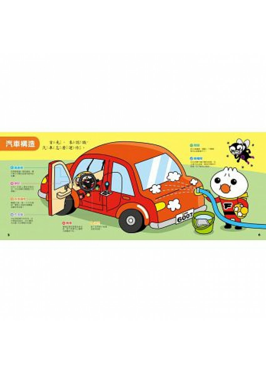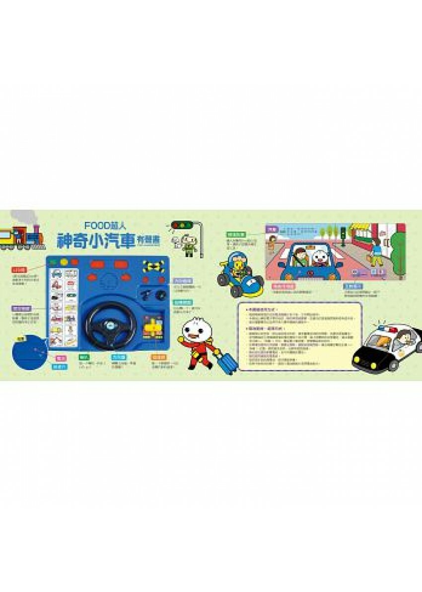 搭配可愛的插圖與有趣的Food超人故事繪本,還有簡易的汽車構造與交通號誌介紹,讓孩子在閱讀故事中更了解相關的規則與常識。